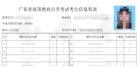 1.準(zhǔn)考證:使用考生信息簡(jiǎn)表+身份證??忌枳孕械卿洀V東省自學(xué)考試管理系統(tǒng)(http://www.stegd.edu.cn/selfec/)打印考生信息簡(jiǎn)表(含照片),示例: