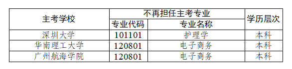 不再擔任廣東省高等教育自學考試相關(guān)專業(yè)主考學校匯總表