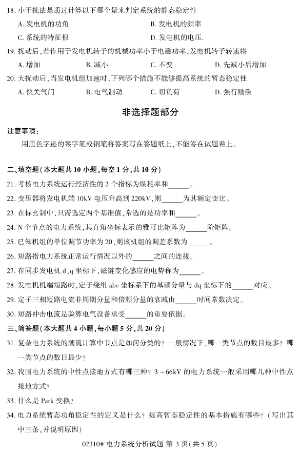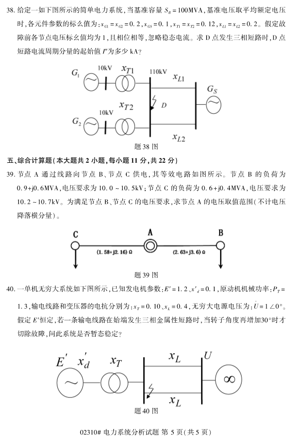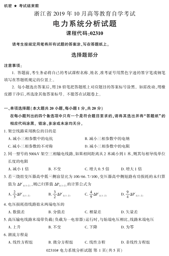 2019年10月自考02310電力系統(tǒng)分析試題