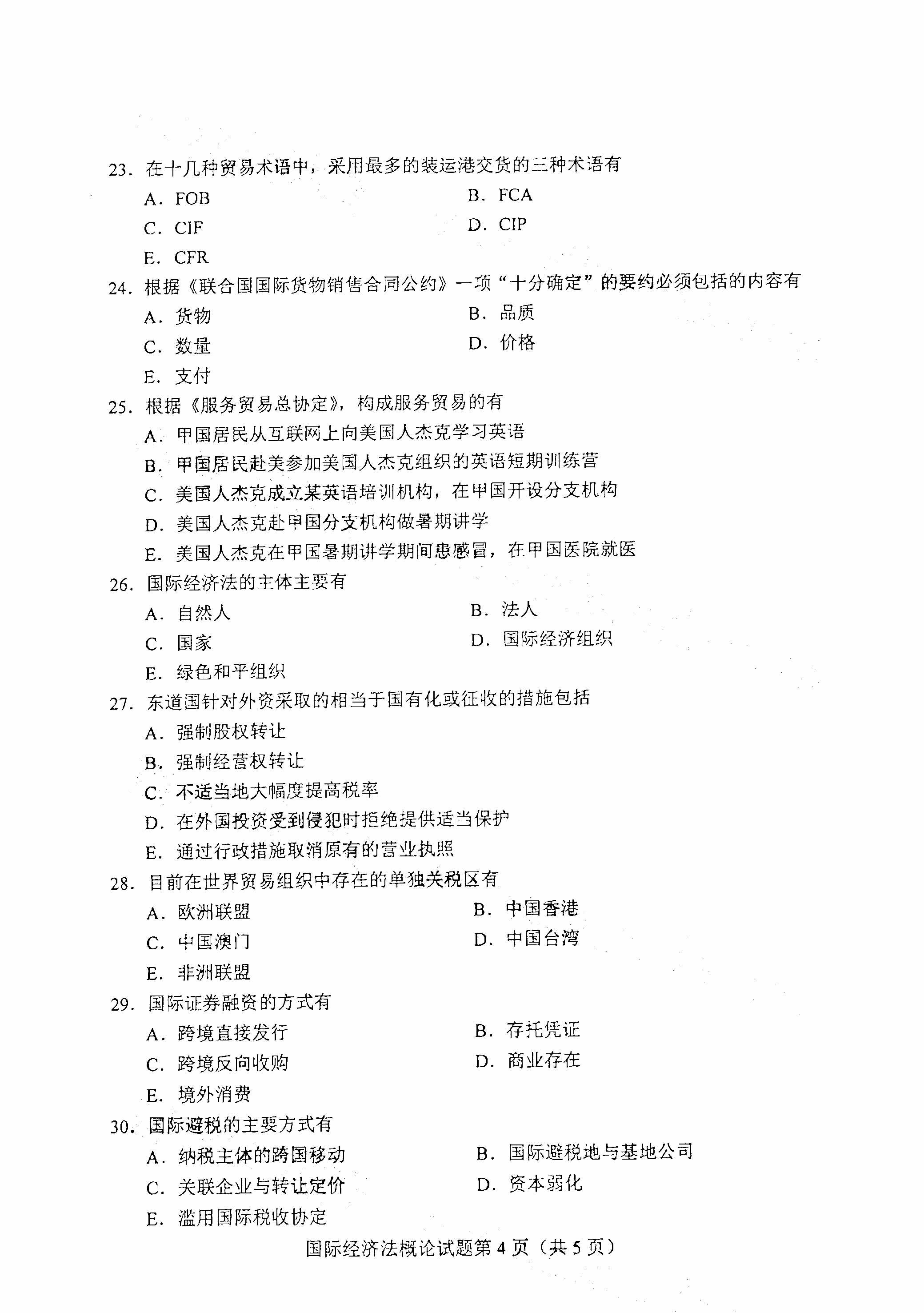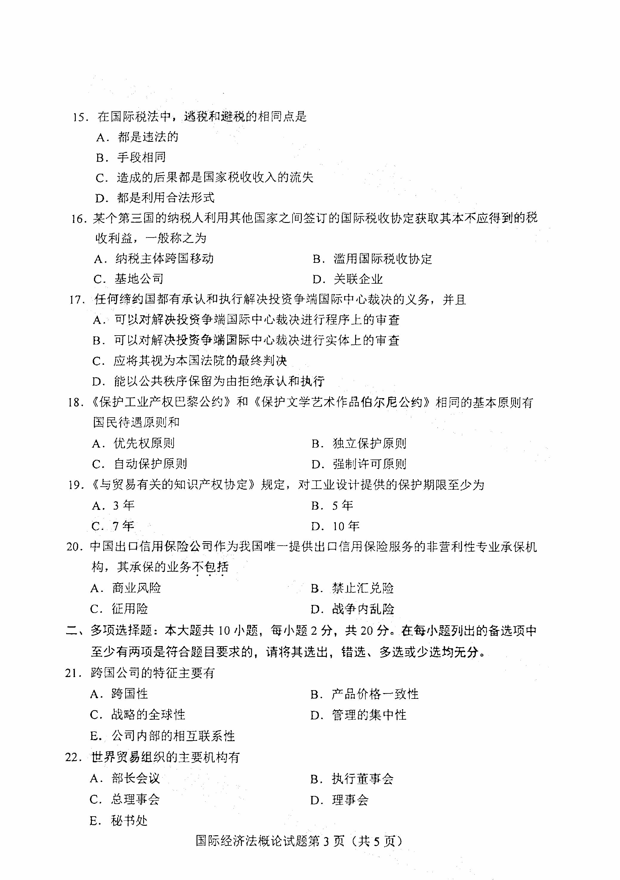廣東2021年4月自考00246國(guó)際經(jīng)濟(jì)法概論真題試卷