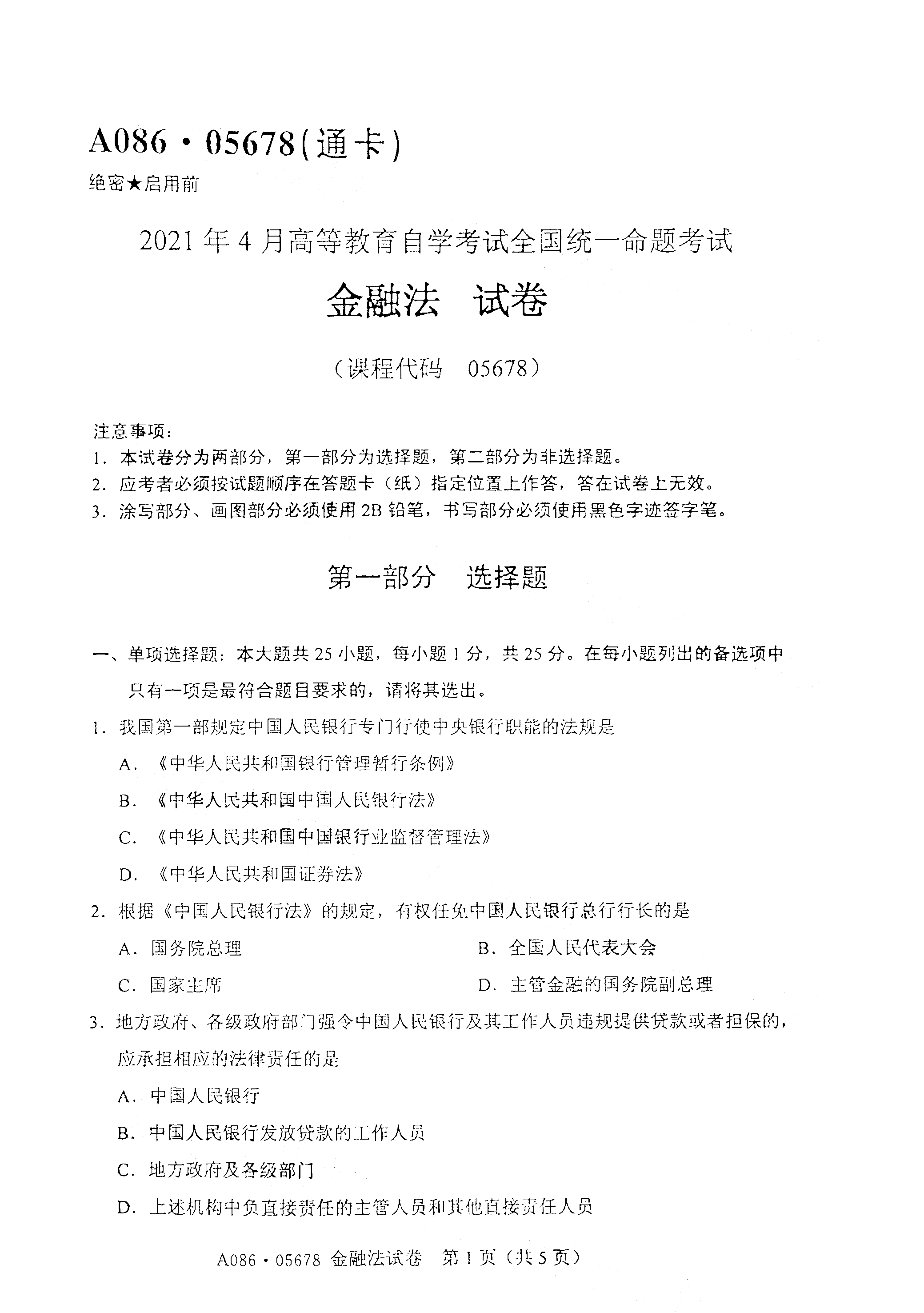 以下是2021年4月自考05678金融法真題試卷內(nèi)容,如有疑問可咨詢【關注“廣東省自考服務中心”微信公眾號