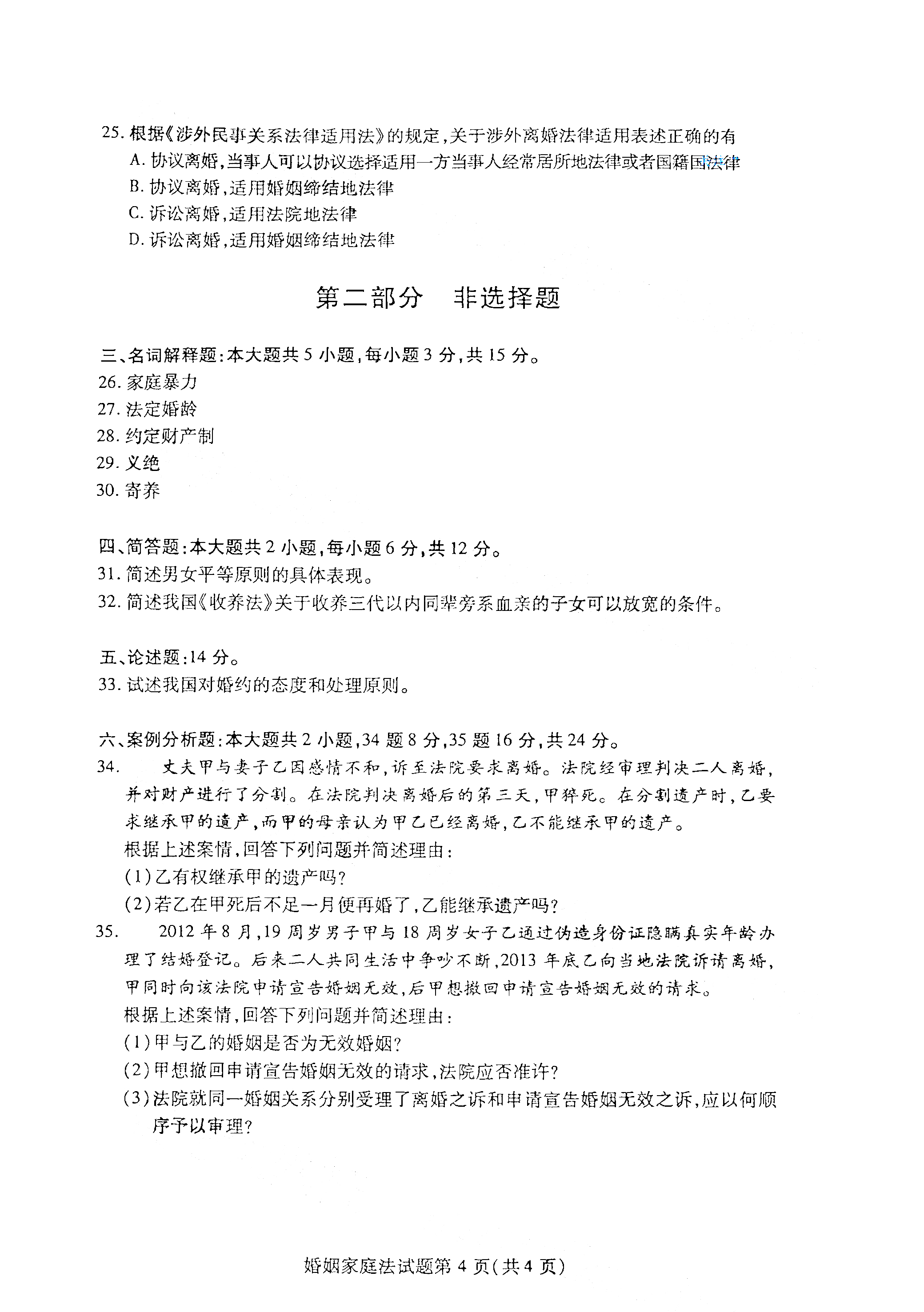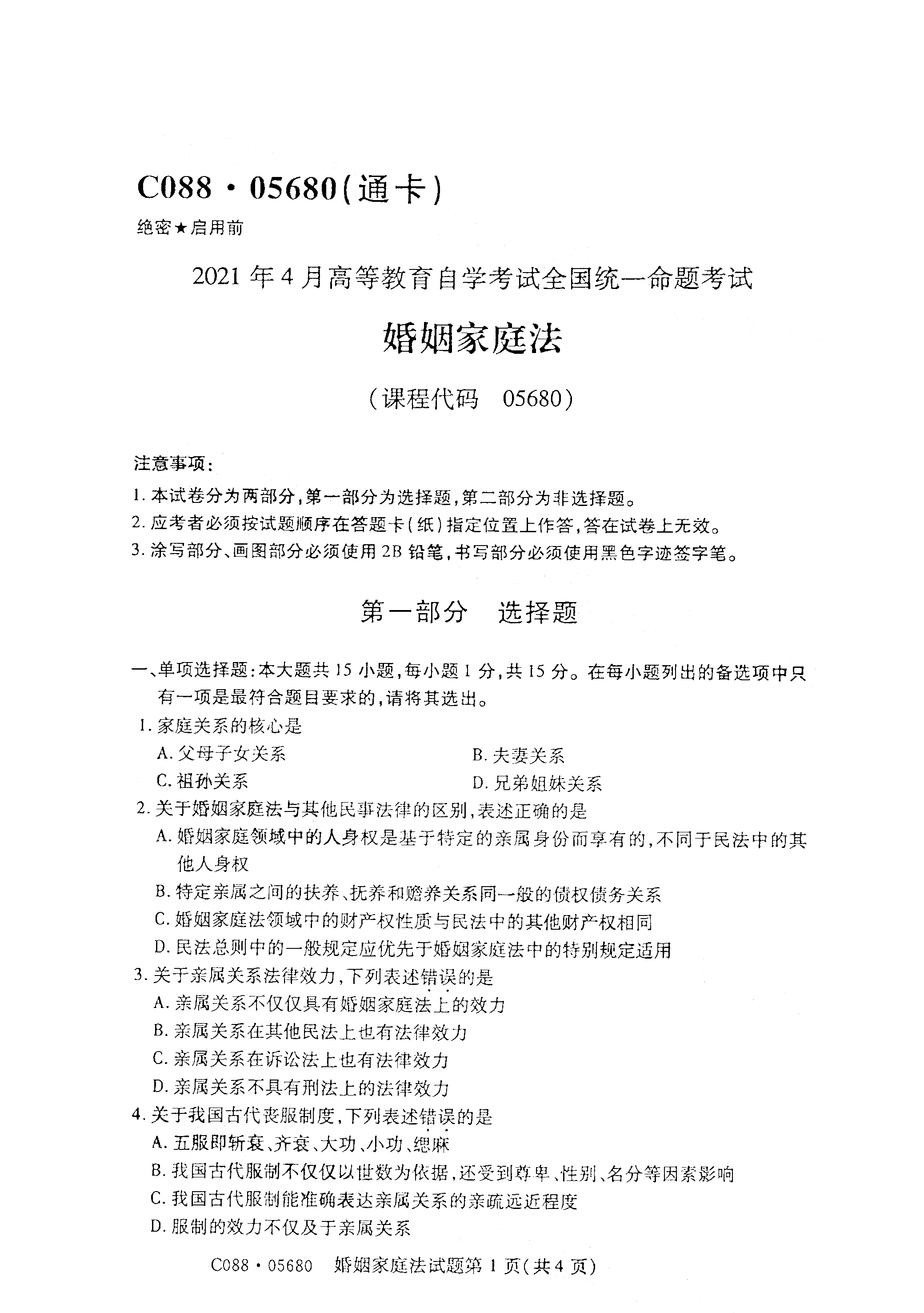 以下是2021年4月自考05680婚姻家庭法真題試卷內(nèi)容,如有疑問(wèn)可咨詢【關(guān)注“廣東省自考服務(wù)中心”微信公眾號(hào)