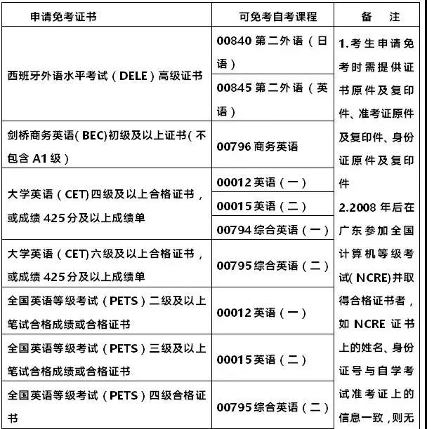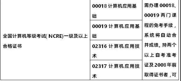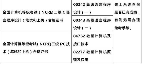 持有英語等級證書、計算機等級證書等可免考相關專業(yè)。比如,通過國家英語等級考試獲得三級或以上證書(或筆試部分成績合格);大學畢業(yè)生在校內參加???,取得大學英語四、六級證書,并在有效期內,可免考“英語(二)”課程。