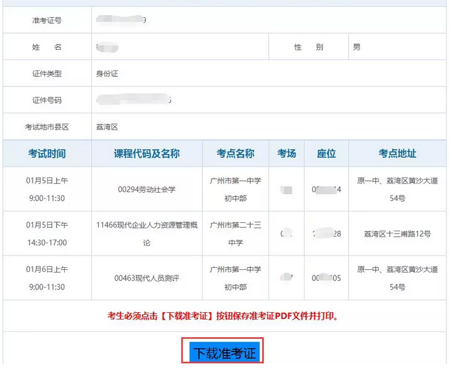 打印準(zhǔn)考證時務(wù)必嚴(yán)格按照《打印準(zhǔn)考證操作流程》,登錄系統(tǒng)后點(diǎn)擊【下載準(zhǔn)考證】按鈕下載準(zhǔn)考證PDF文件并打印(準(zhǔn)考證式樣參考文后),不得用打印截圖、網(wǎng)頁等方式替代。